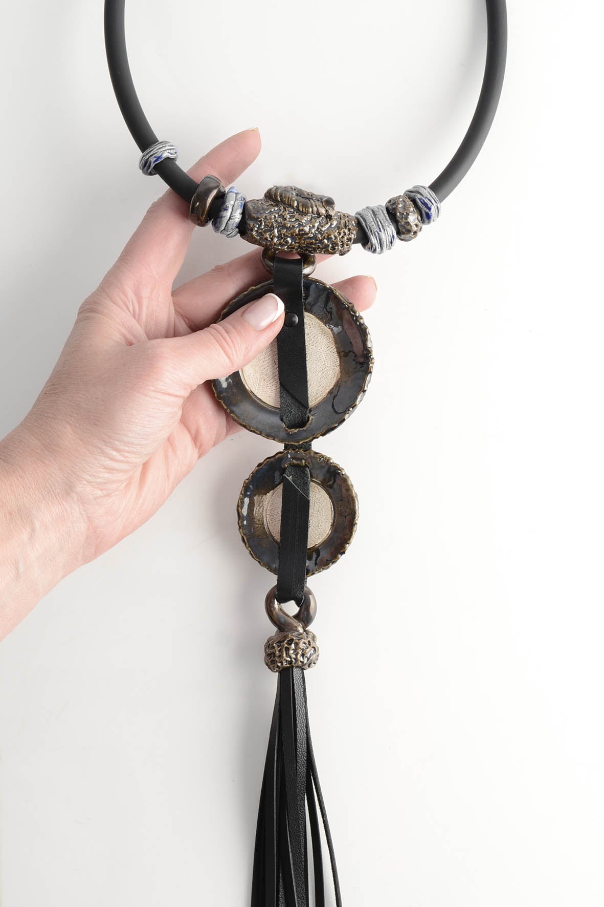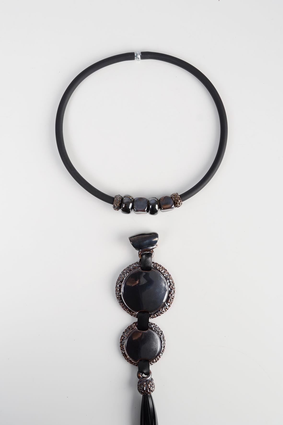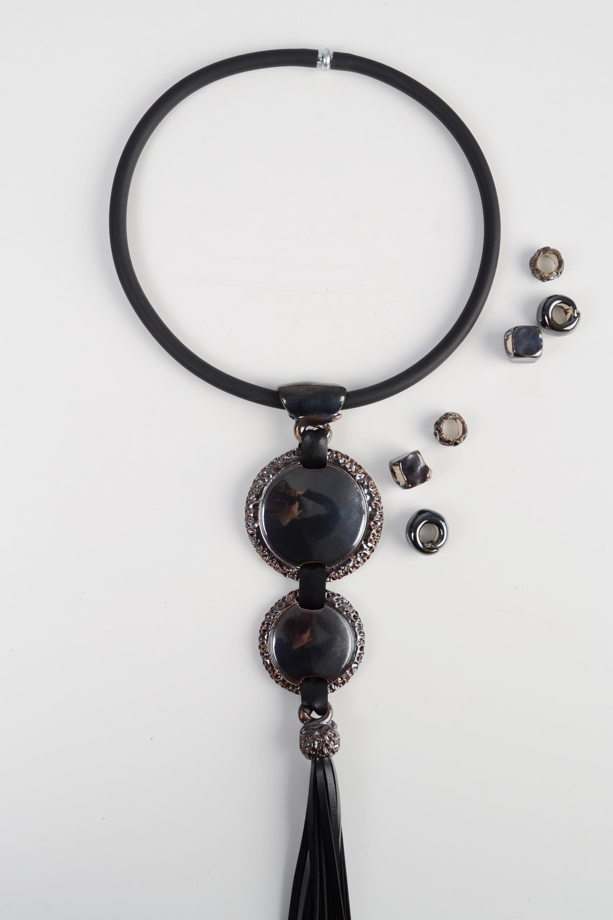 • Viso vėrinio ilgis - 25 cm. Pačios didžiausios keramikos dalies skersmuo - 7 cm. Vėrinio svoris - 125 g.