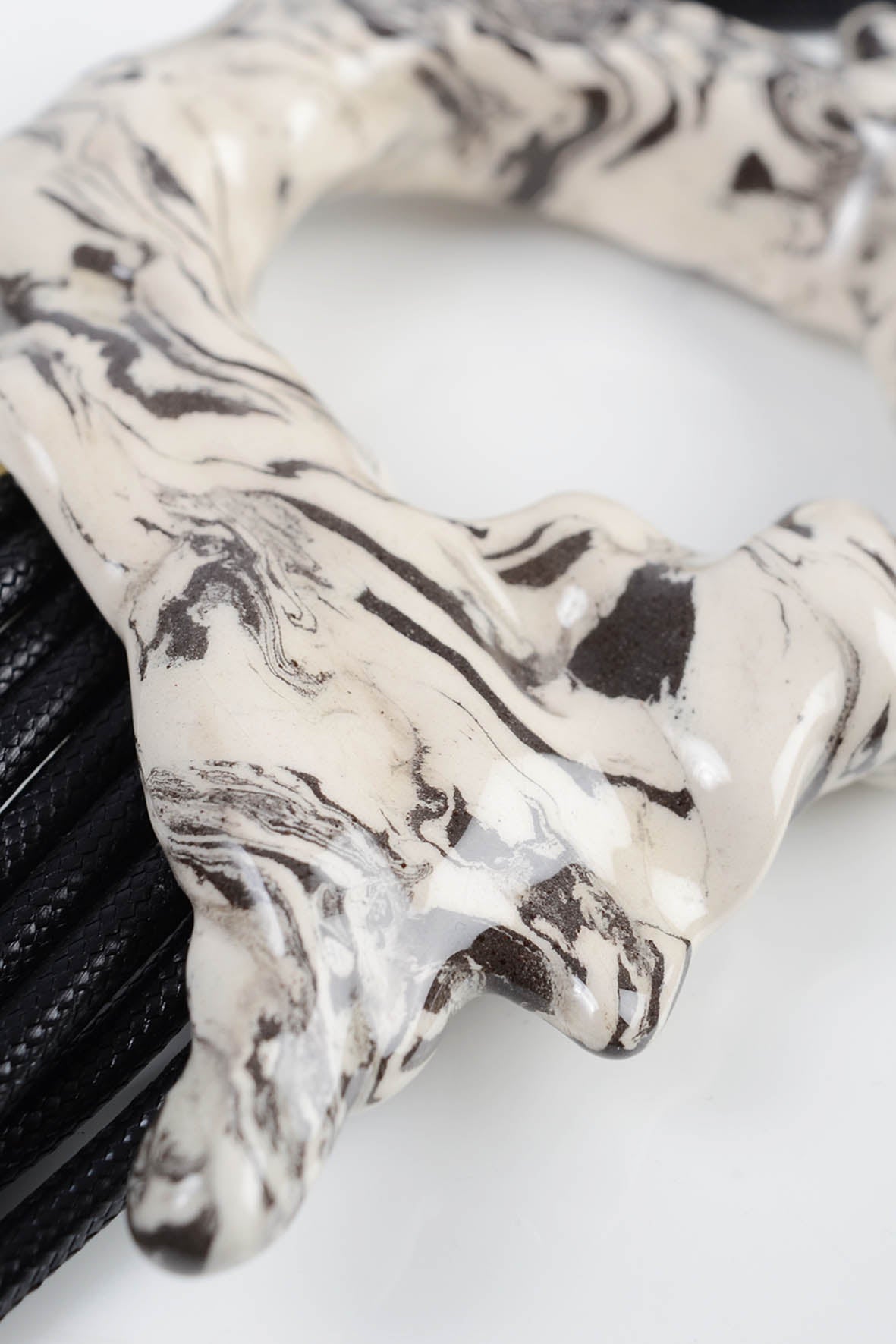 Šį papuošalą sukūriau iš balto ir juodo molio, naudodama techniką, kuri leidžia išgauti autentišką marmuro efektą. Jis dera prie visko, visada atrodo prabangiai ir suteikia paslaptingumo. Multifunkcinis papuošalas puikiai tinka prie juodų suknelių, baltų marškinių, odinių švarkų ar minimalistinių, vienspalvių derinių. Tai originalus, vienetinis papuošalas, kurį lengvai derinsi su mano odinėmis apyrankėmis ar subtiliais auskarais. ing-ring papuošalo rišimo būdų video