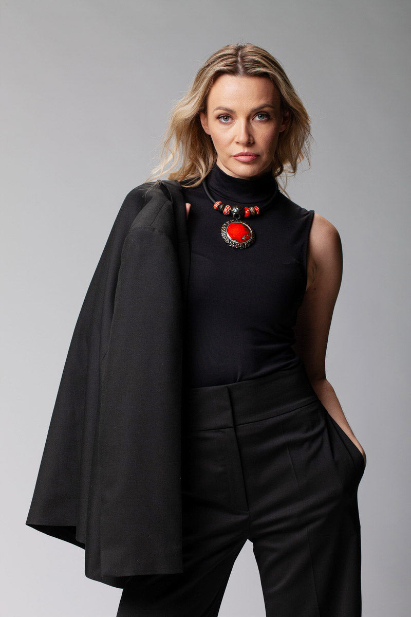 Pilkai oranžinis derinys atrodo netikėtai – bet ant kaklo jis veikia drąsiai, moderniai ir labai savitai. Tai kaklo papuošalas kitaip – rankų darbo, su glazūruotu paviršiumi ir dekoruotais kraštais, kurie pabrėžia unikalią formą. Sukurtas moteriai, kuri nori turėti vieną akcentą vietoj dešimties detalių. Ne šiaip papuošalas, o meno kūrinys.